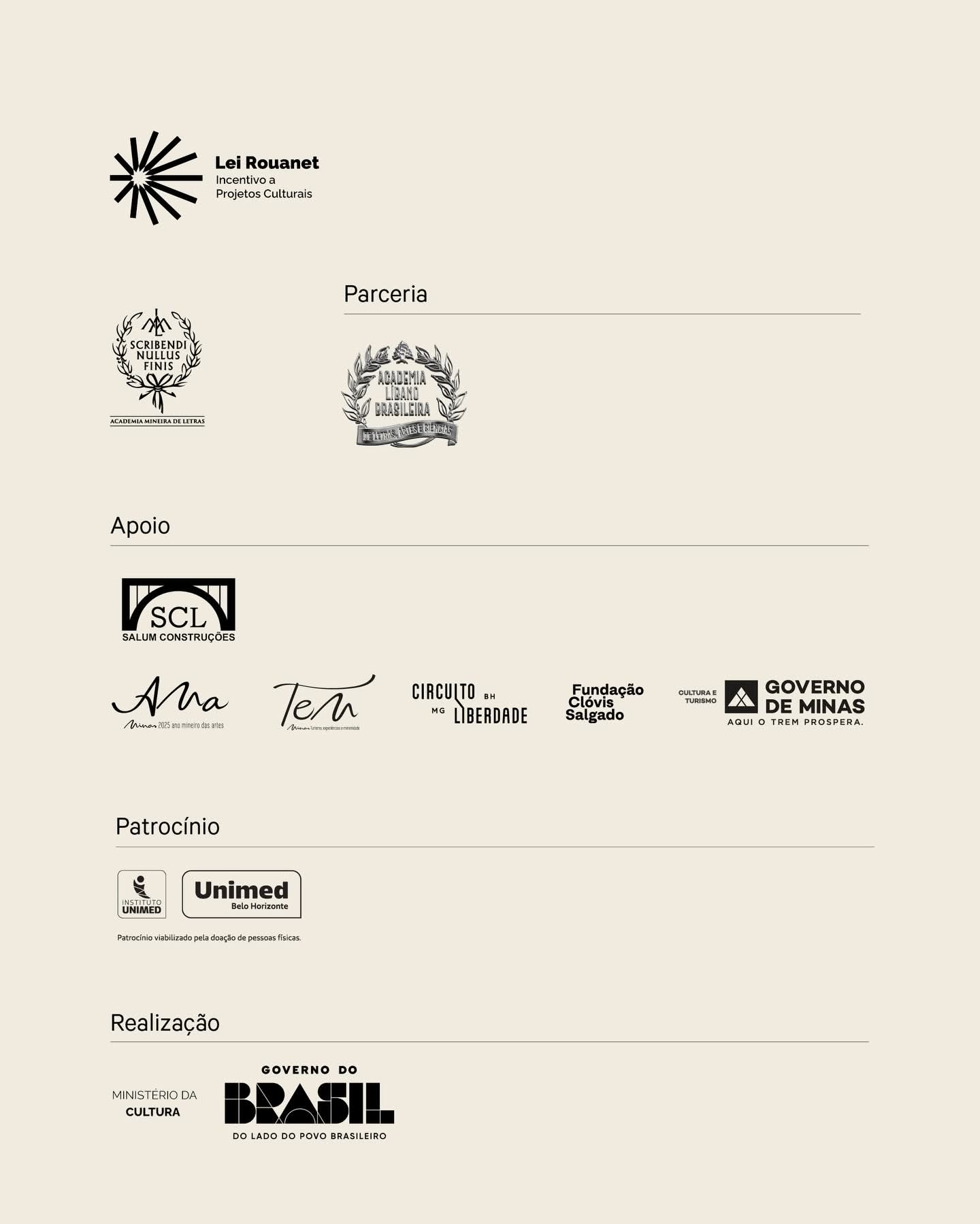 “Colóquio Elias Farhat: O príncipe dos poetas árabes entre nós” é uma iniciativa da Academia Líbano-Brasileira de Letras, Artes e Ciências e da Academia Mineira de Letras. O evento acontece no âmbito do “Plano Anual Academia Mineira de Letras – AML (PRONAC 248139)”, previsto na Lei Federal de Incentivo à Cultura, e tem o patrocínio do Instituto Unimed-BH – por meio do incentivo fiscal de mais de cinco mil e setecentos médicos cooperados e colaboradores. O Colóquio Elias Farhat tem apoio de Salum Construções.