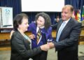 Homenagem a Soraya Smaili em evento anual promovido pelo CONSCRE – Conselho Estadual Parlamentar das Comunidades de Raízes Estrangeiras, na Assembleia Legislativa de São Paulo. Gabriel Sayegh (Secretário do CONSCRE e Vice-Presidente do ICArabe) e Nailize Kaba (Conselheira do CONSCRE) representantes da Comunidade Árabe, entregaram a placa de homenagem à Soraya.