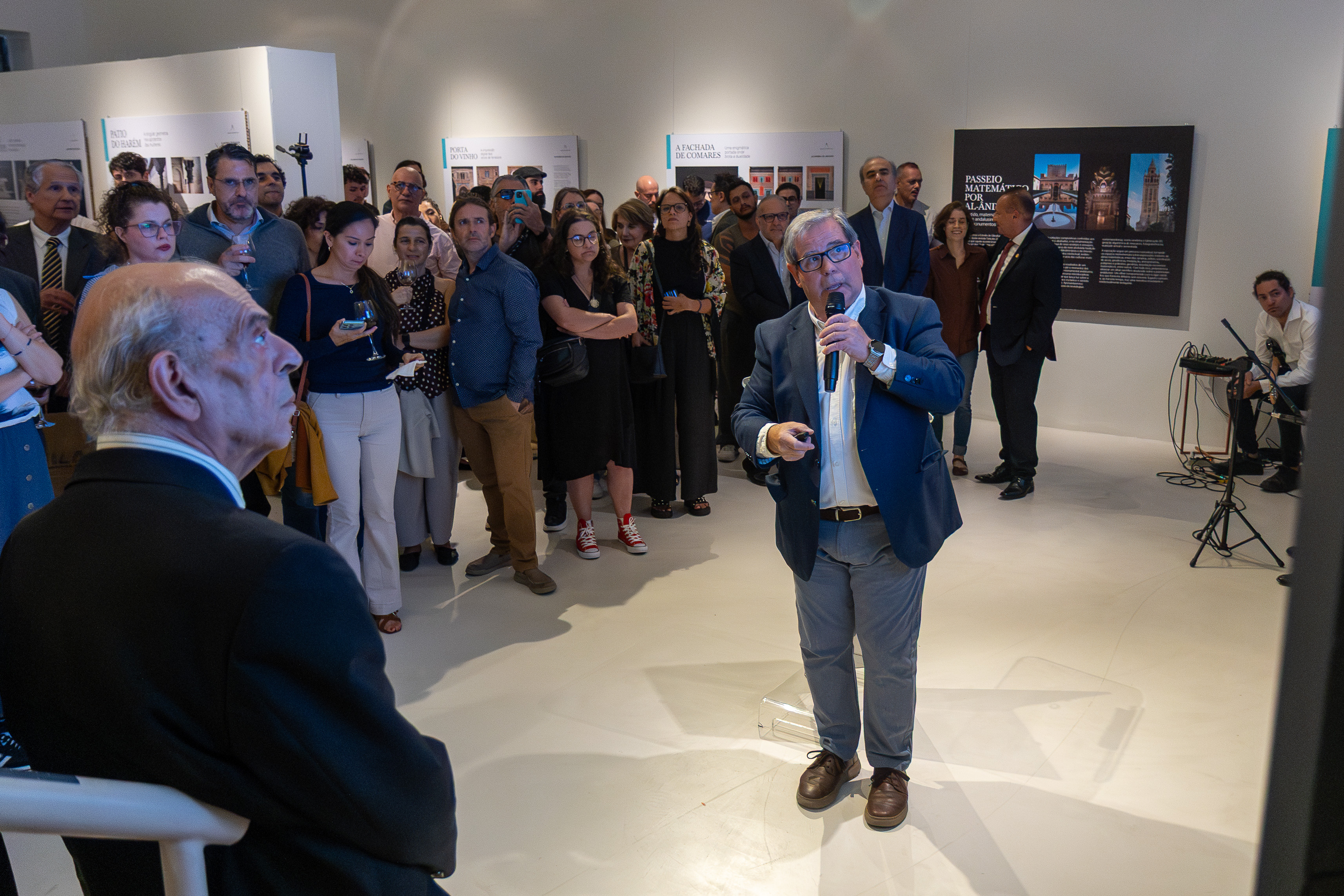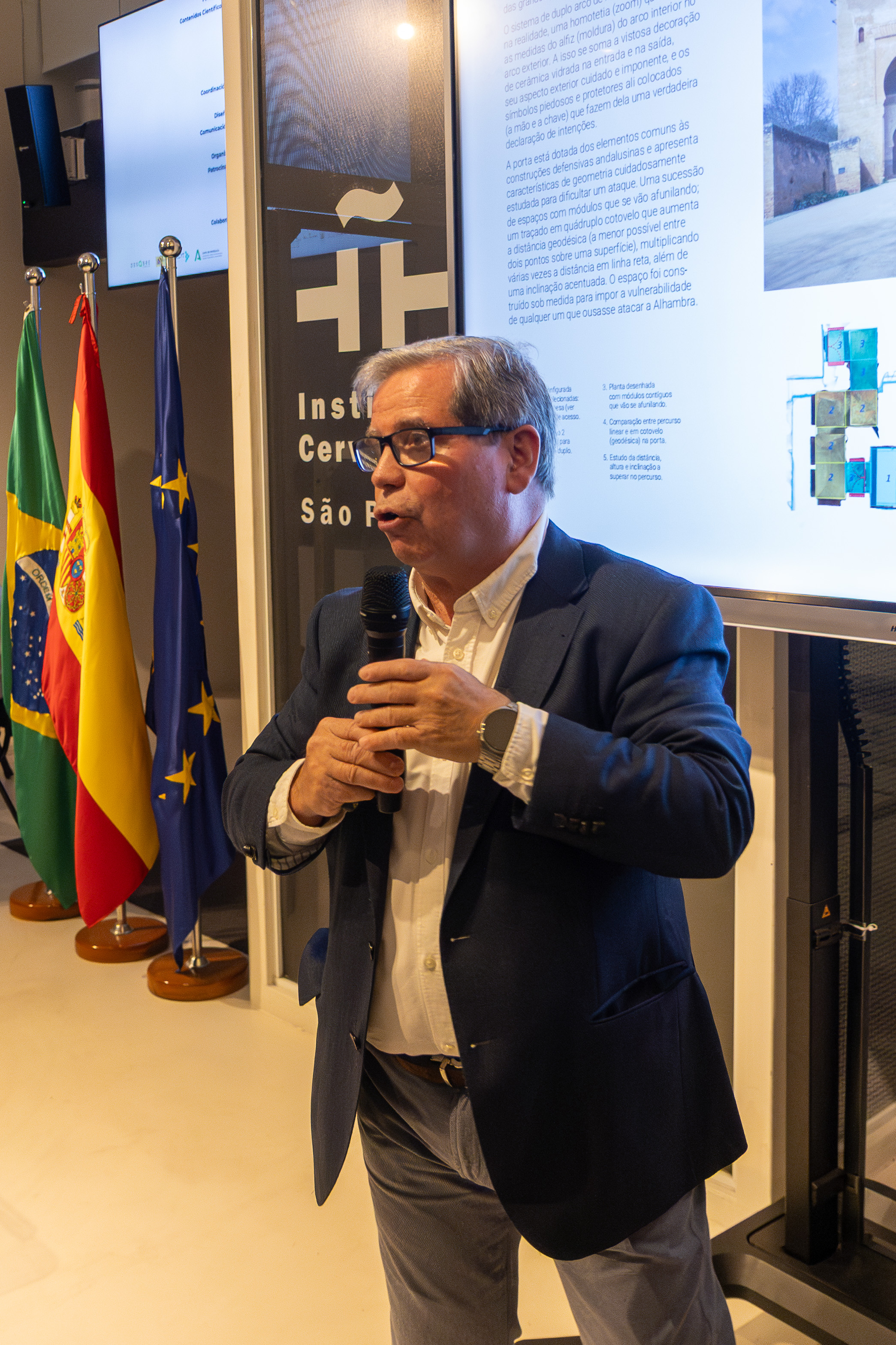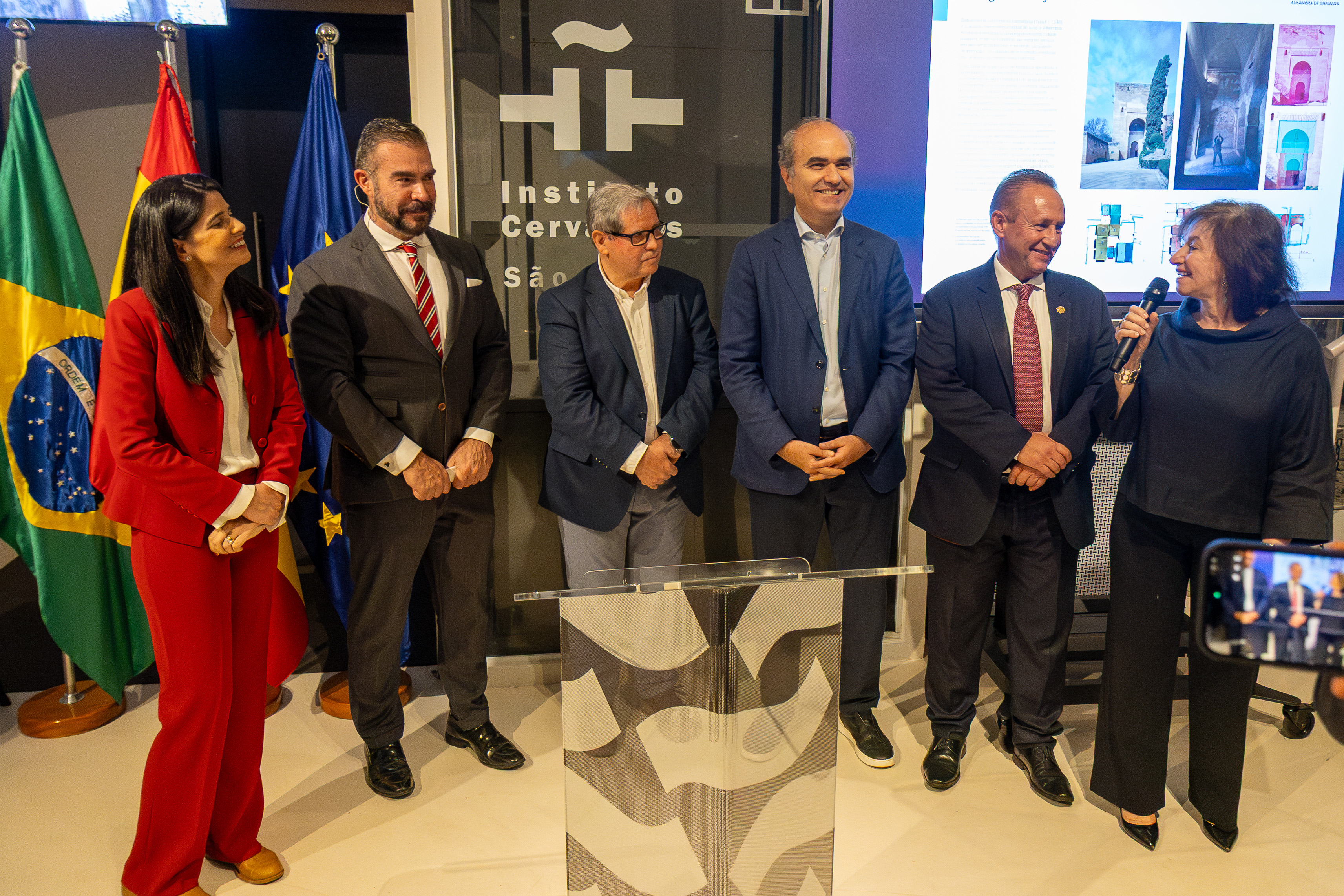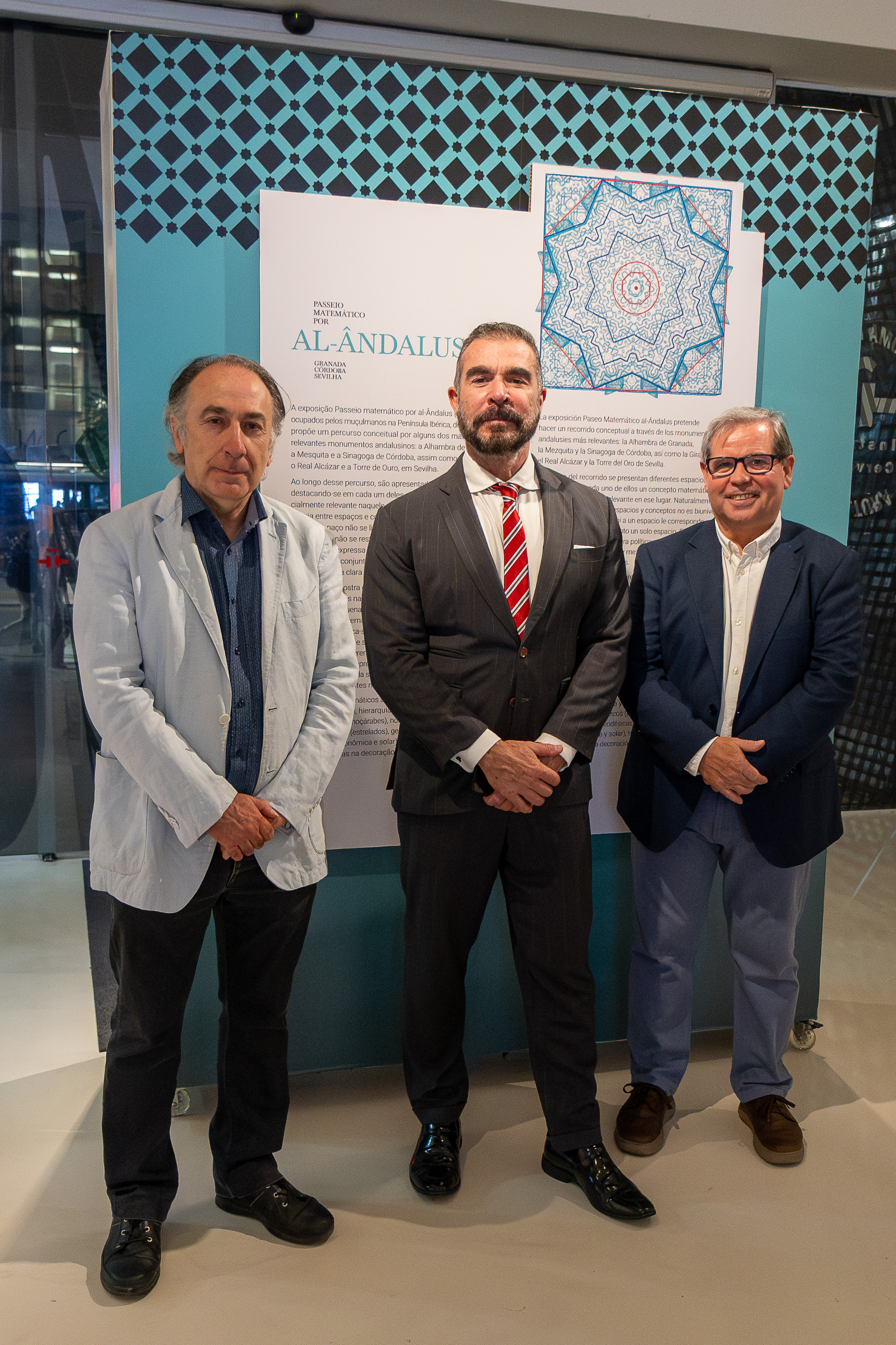 Em sua fala, Daniel Gallego Arcas afirmou que o objetivo do Instituto não é só promover a língua espanhola e as culturas hispânicas, mas também o conhecimento científico como parte do patrimônio cultural. Ressaltou que a mostra convida a revisitar o legado de Al-Andalus, um contexto histórico singular que, durante séculos, foi um dos principais pontos de transmissão do saber, além de permitir avanços significativos na matemática, na astronomia, na medicina e na filosofia, contribuindo para a construção do pensamento científico moderno e para a matemática como linguagem universal. “A exposição destaca de forma exemplar a ligação entre ciência e estética e podemos compreender como princípios matemáticos estruturam o pensamento científico e se manifestaram de forma artística e arquitetônica. É um convite à reflexão sobre a natureza do conhecimento e a importância das abordagens interdisciplinares na compreensão do mundo contemporâneo.”