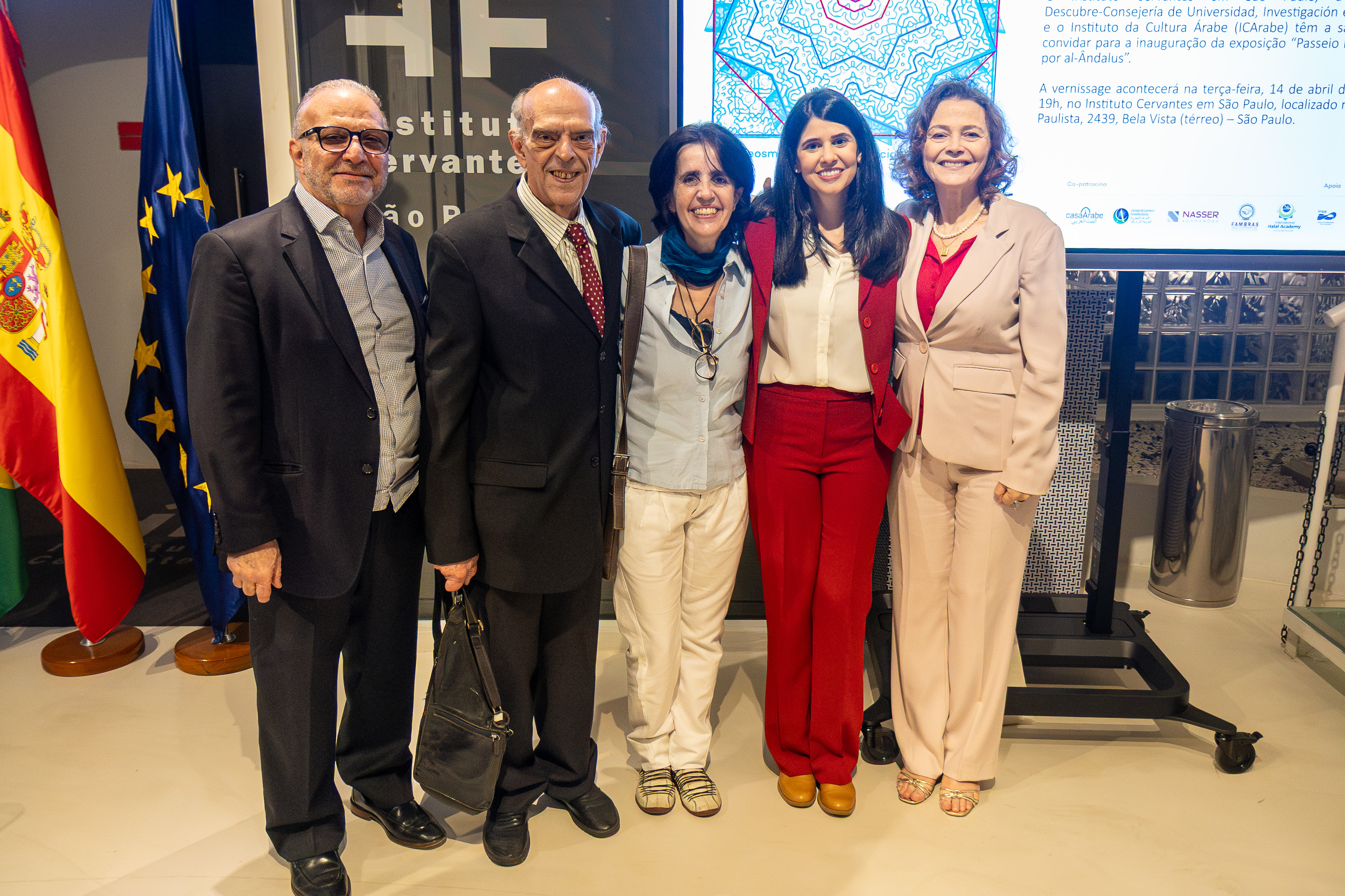 A abertura contou com as presenças de de Natalia Calfat, presidente do ICArabe; Daniel Gallego Arcas, diretor do Instituto Cervantes; Rabih Nasser, sócio do escritório Nasser Advogados; Delduque Martins, diretor de Projetos e Relações Institucionais da Fambras; Álvaro Martínez Sevilla, diretor científico do Projeto Passeios Matemáticos da Universidade de Granada; e Silvia Antibas, vice-presidente de Comunicação e Marketing da Câmara Árabe.