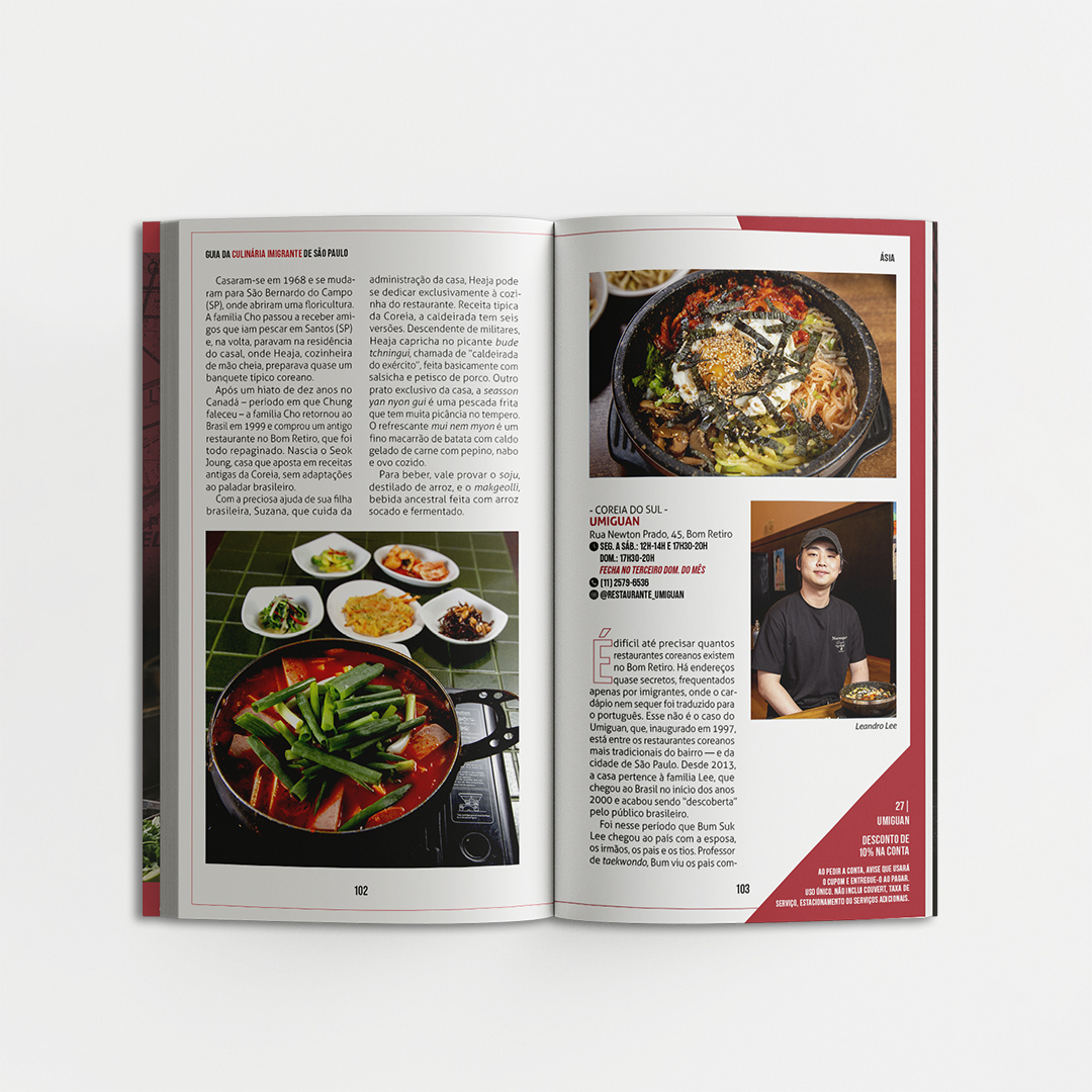 Publicação reúne 33 estabelecimentos familiares comandados por imigrantes de diferentes gerações e conta com cupons promocionais para estimular a visitação do público a bares e restaurantes como Al Janiah, Casa Turca e Cho Sun Gal Bi, entre outros.