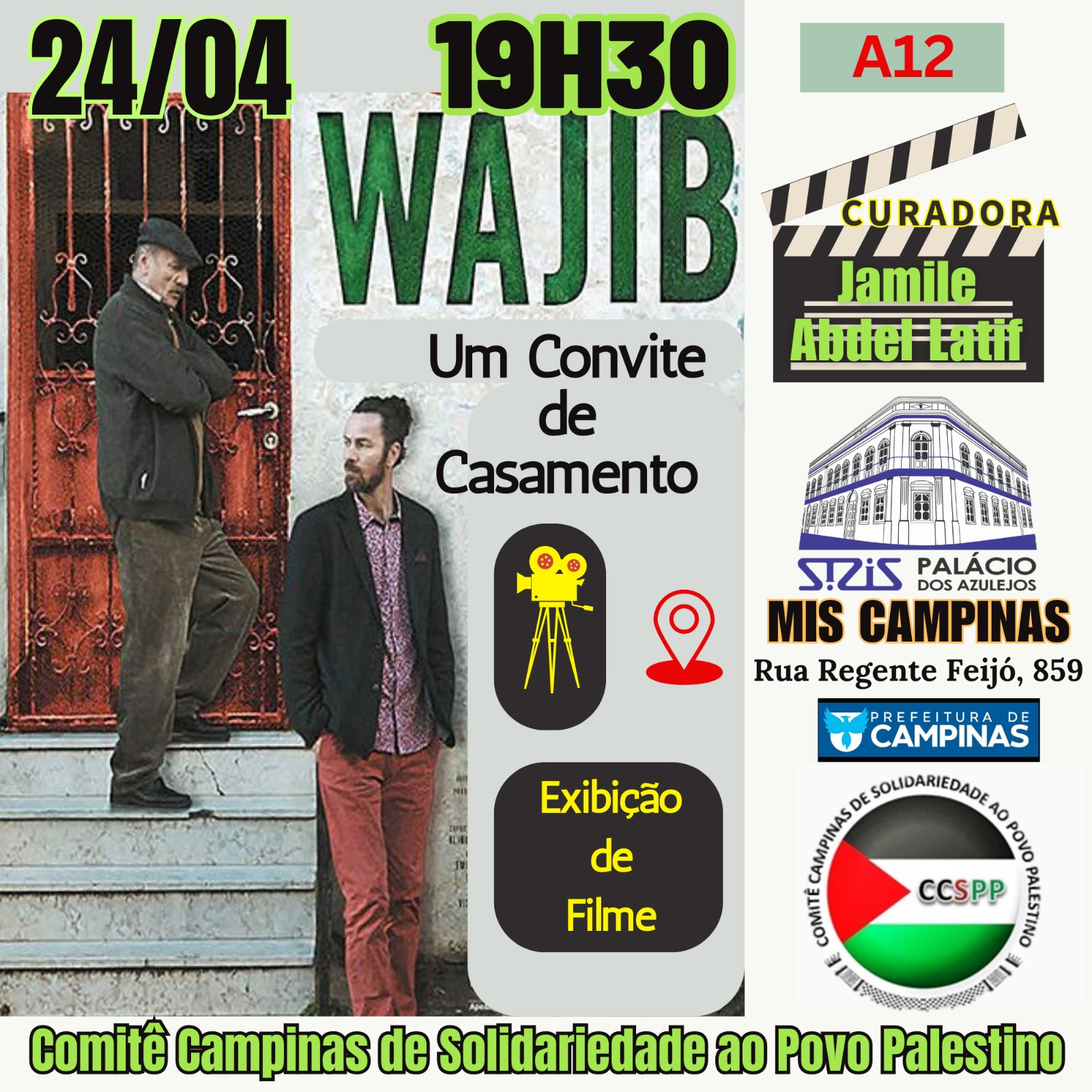 As nuances da identidade palestina e as complexidades das relações familiares ganham a tela do Museu da Imagem e do Som (MIS) de Campinas nesta sexta-feira, 24 de abril. A partir das 19h30, o Comitê Campinas de Solidariedade ao Povo Palestino promove uma sessão gratuita do premiado longa “Wajib — Um Convite de Casamento”.